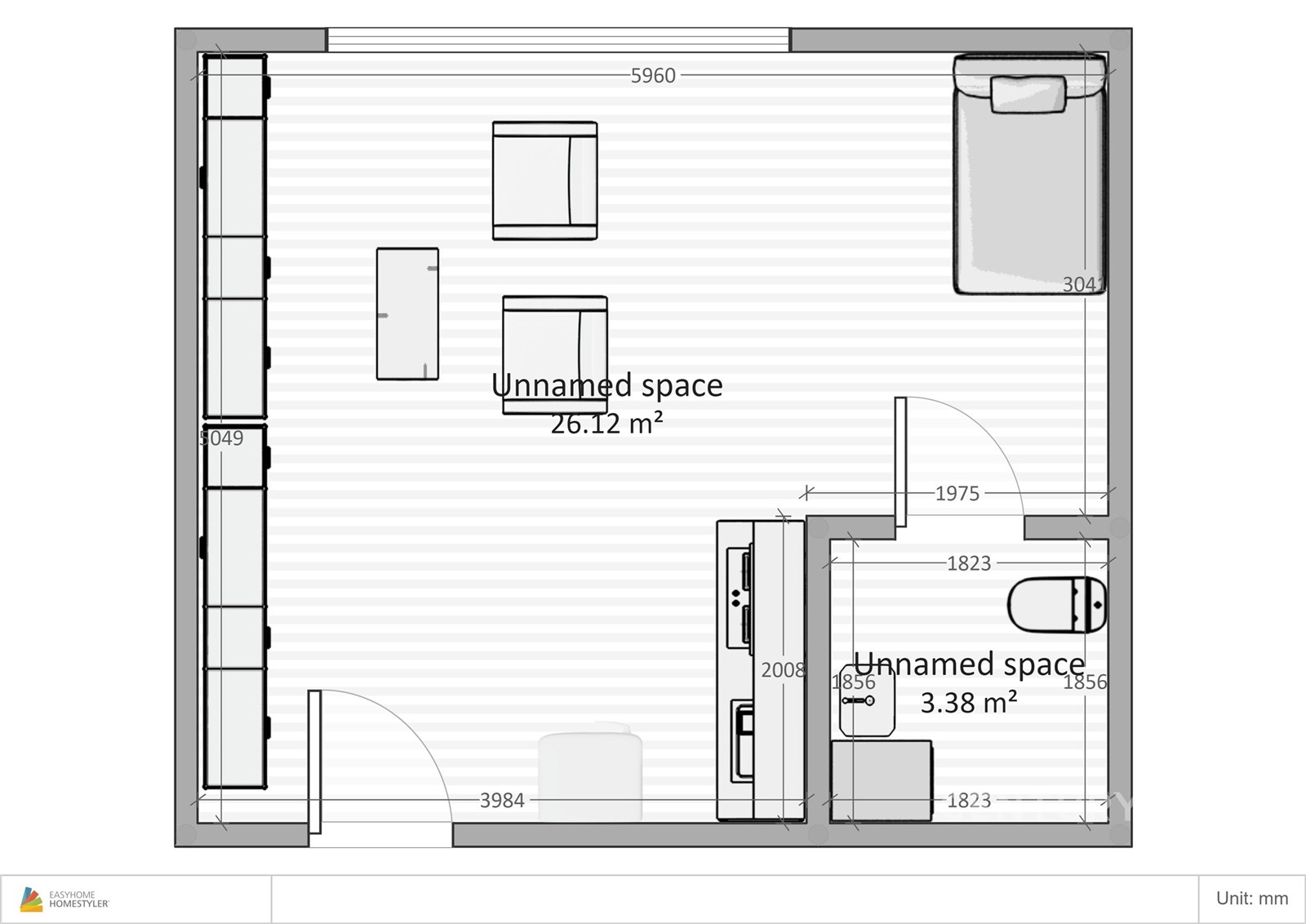 Fotografie 6/14 Obývací pokoj s moderní kuchyní, parketová podlaha
